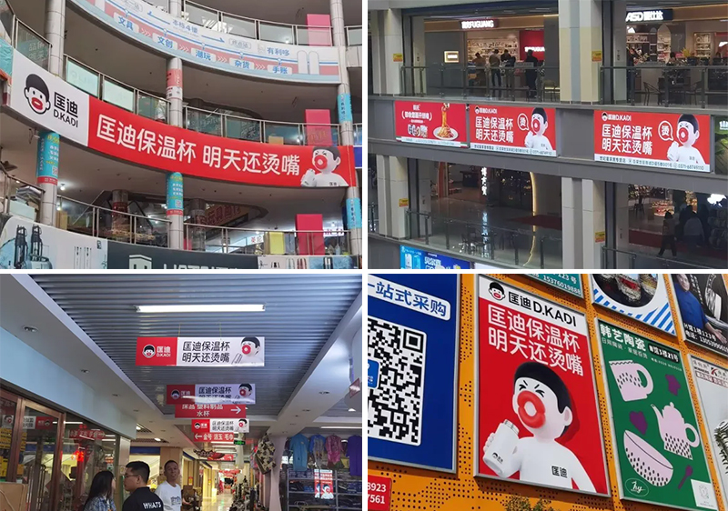 不止如此,我們還圍繞門店,在批發(fā)市場(chǎng)周邊投放了商圈廣告,甚至打造了“品牌打卡墻”,讓匡迪的形象低成本地“無(wú)處不在”。
